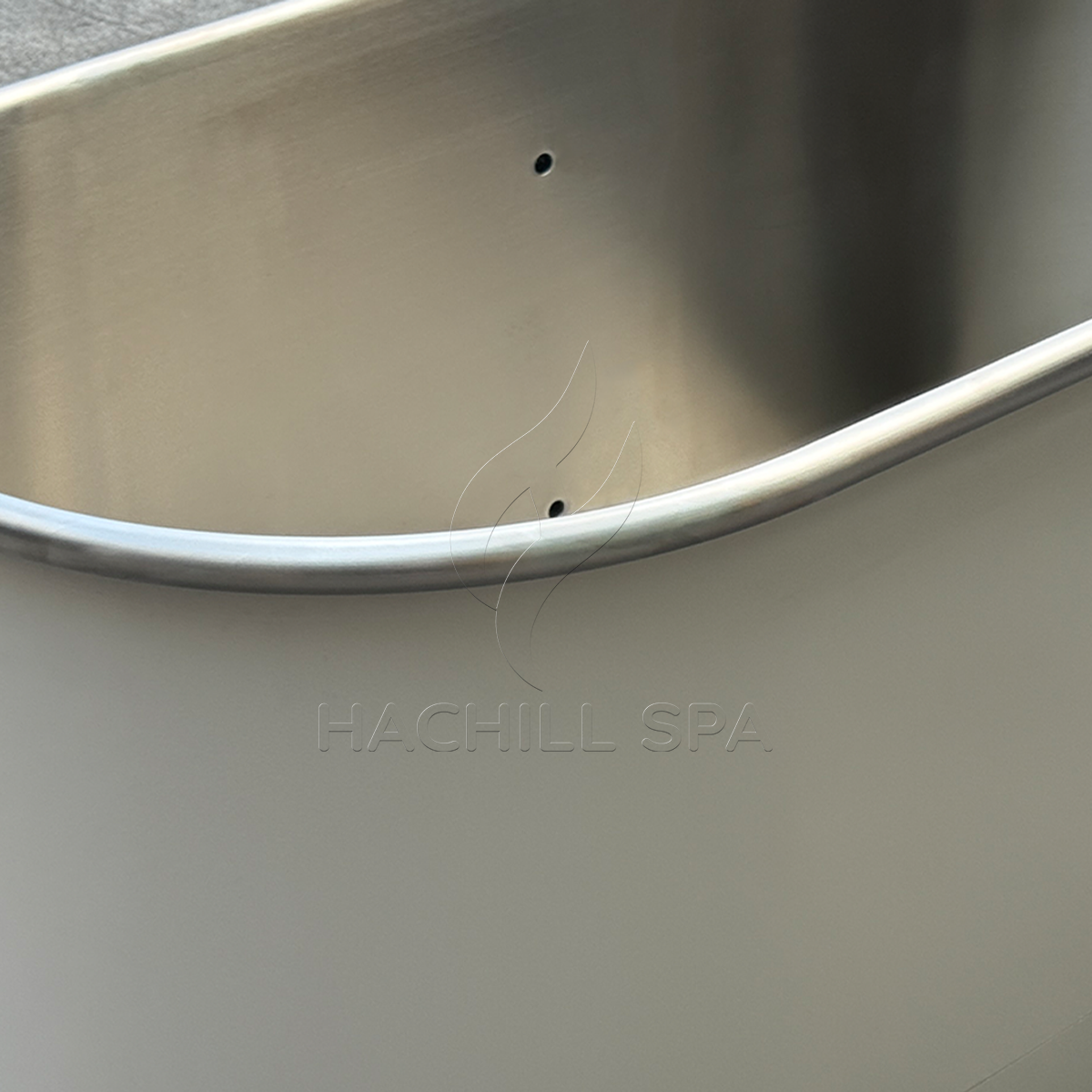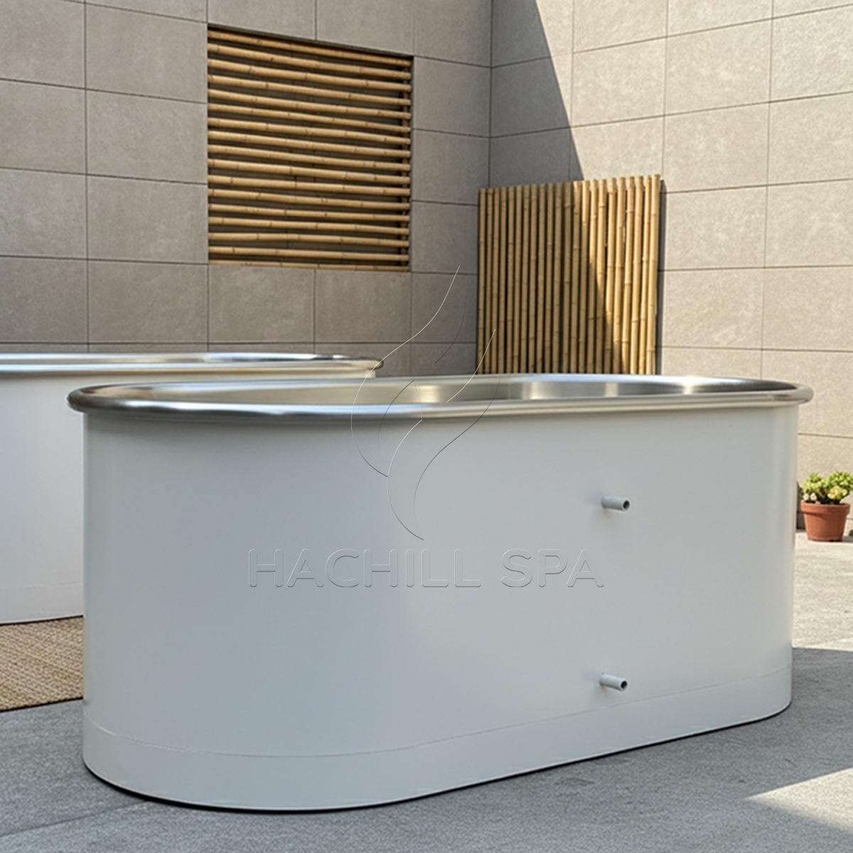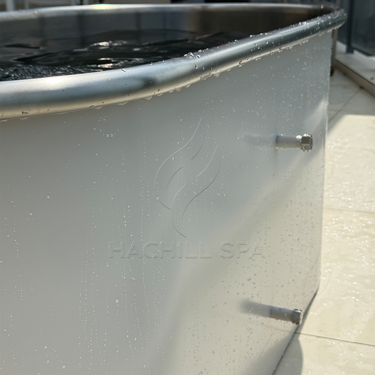 CT13 is crafted from a single layer of 304 stainless steel, finished in a clean white outdoor coating. Its rounded rim doubles as a comfortable handrest, creating a perfect balance of form and function for a refined cold plunge experience.