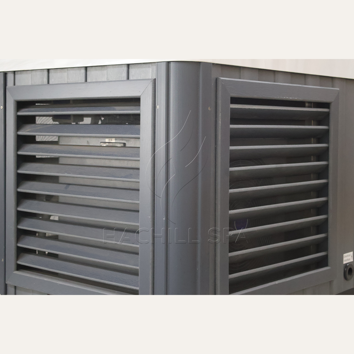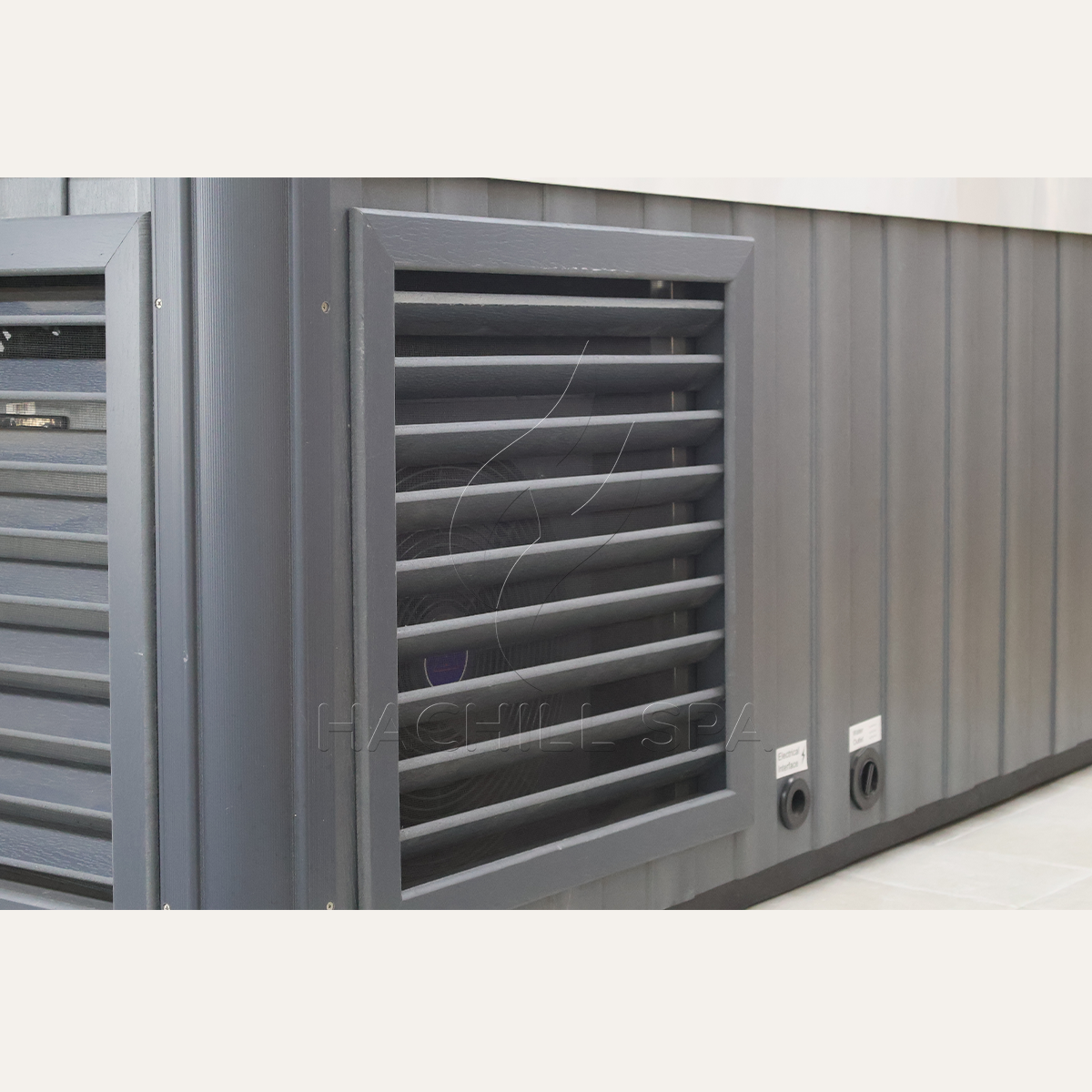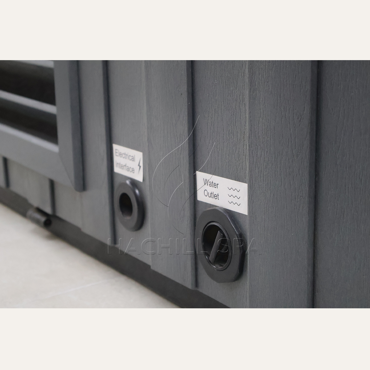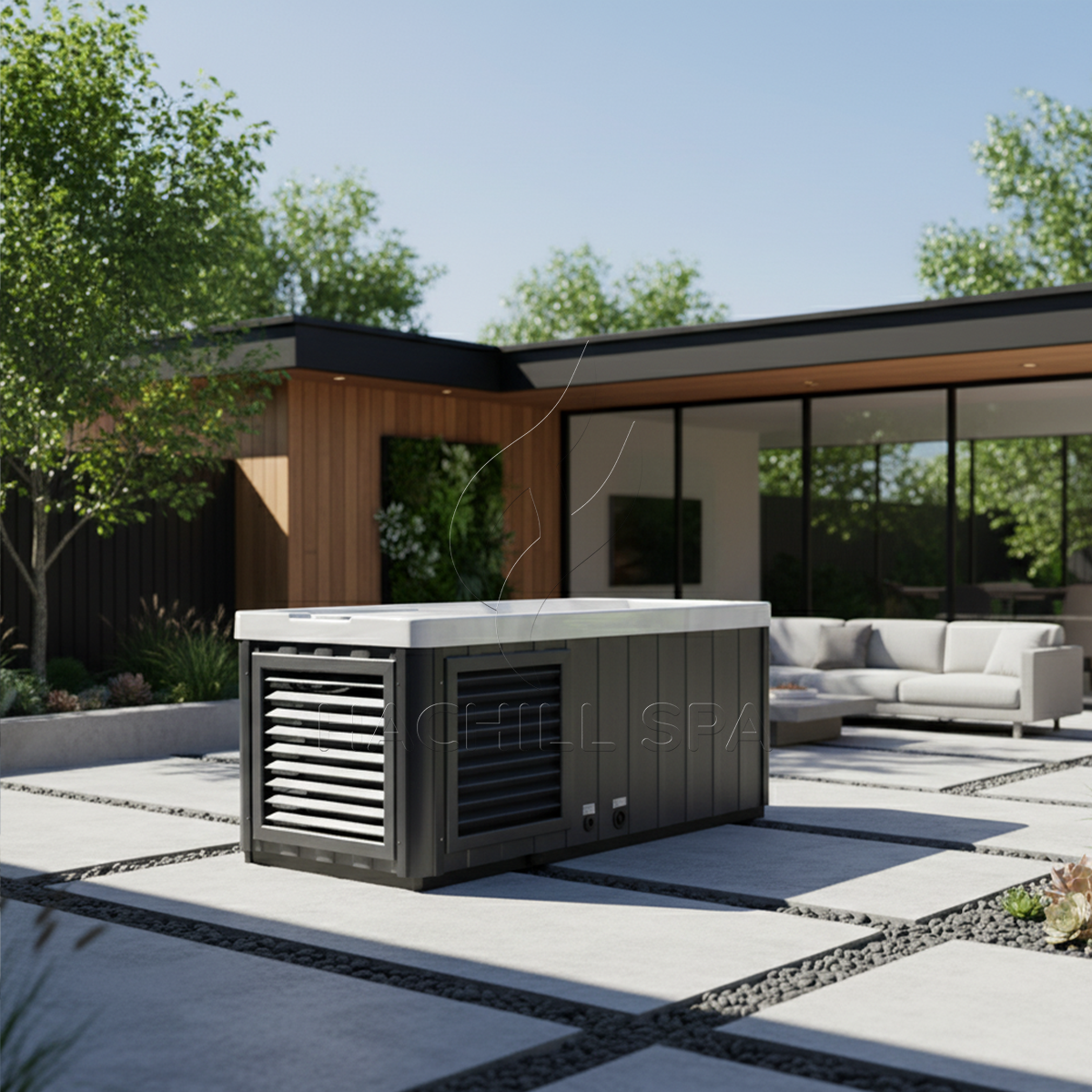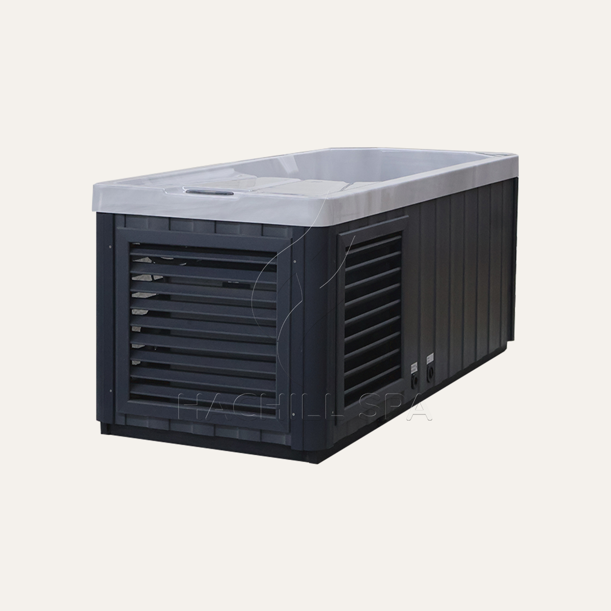 Modern, minimal, and built to last — the gray-blue WPC exterior and sleek acrylic interior create a clean, contemporary look that fits seamlessly into any spa, gym, or backyard retreat.